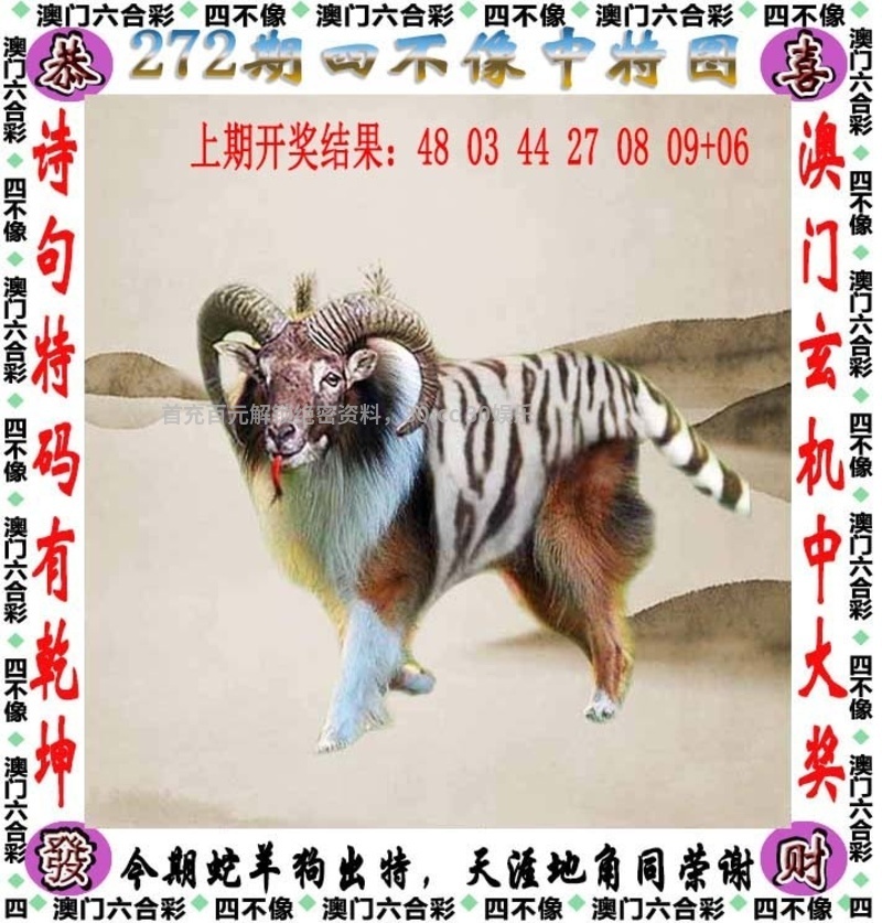 272期:今期蛇羊狗出特,天涯地角同荣谢 开:马36准 ①图解特肖蛇羊狗虎兔马 ②小数+合单 本人取特都是有思路可寻,对错看天意,喷狗绕道 |